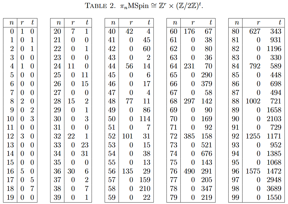 MO, MSO, MSpin, MSpinc, MSpinh MString, MFivebrane, M2-Orient, M2-Spin, MNinebrane (see also pin⁻ bordism, pin⁺ bordism, pinᶜ bordism, spin bordism, spinᶜ bordism, spinʰ bordism, string bordism, fivebrane bordism, 2-oriented bordism, 2-spin bordism, ninebrane bordism)